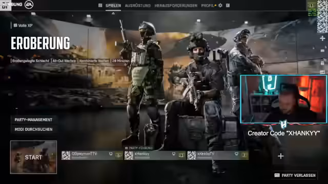 00:04:32Der Stream beginnt mit einer enthusiastischen Begrüßung an die Zuschauer. Der Hauptgrund der Freude ist der bevorstehende Release von Battlefield 6 in drei Stunden. Der Streamer teilt mit, dass er bereits Zugang zur Vorversion hatte und Gameplay-Material aufzeichnen konnte. Für den Tag sind mehrere Giveaways angekündigt: vier Battlefield 6 Keys und ein weiteres für Hardware wie eine Maus und ein Keyboard, dessen Details noch geklärt werden. Zudem erwähnt er den neuen EA Creator Code 'XHanky', mit dem Zuschauer ihn kostenlos unterstützen können, ohne zusätzliche Kosten.