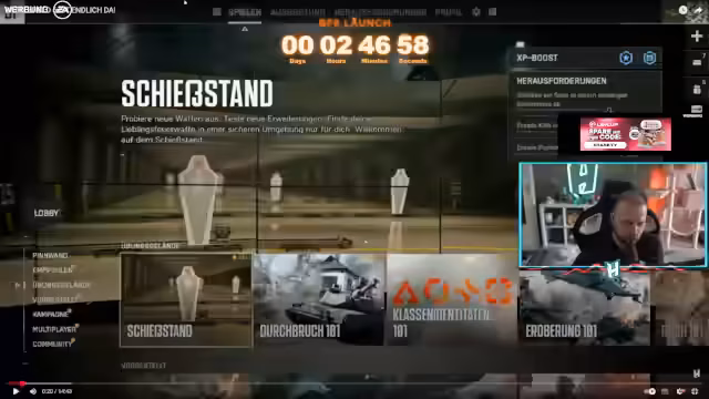 06:06:11Nach einer Runde wird der XP-Bonus im Menü aktiviert, wobei der Streamer erklärt, wie man XP-Boosts über das Featured-Menü einschaltet. Es folgt ein weiteres Giveaway, bei dem eine Standard Edition von Battlefield 6 verlost wird, und die Methode zur Teilnahme durch 'BF6' im Chat wird wiederholt. Technische Probleme werden kurz erwähnt, wie dass das Spiel bei einigen nicht mehr aufgenommen wird, aber der Fokus liegt auf der Verlosung und der Erklärung, wie man das Spiel über Steam kauft.