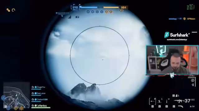 00:28:36Nachdem der Streamer seinen Platz im Team gesichert hat, bittet er einen Kameraden namens Vladi, ihm bei der Besetzung des Helikopters zu unterstützen. Zusammen steigen sie in den Jet, um den Helikopter zu fliegen. Sie erzielen anfangs viele Kills, doch der Run endet abrupt, als sie von einer unaufhaltsamen, lasermarkierten Rakete getroffen werden. Der Streamer ist frustriert über das Problem, dass sein Team kaum Anti-Air-Unterstützung leistet und die Gegner ungestört operieren können.