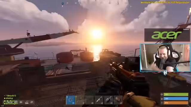 00:00:01Diskussionen über die Reparatur von Gegenständen und die Anwesenheit anderer Spieler im Spiel. Es wird überlegt, den Top-Fragger des Servers ins eigene Team zu holen. Die Gruppe kehrt zur Basis zurück, um sich einzuschweißen, da es draußen zu kalt ist. Ein Spieler findet ein Loch im Boden. Es wird über die Notwendigkeit gesprochen, Materialien wiederzuverwerten und Vorräte zu sichern, einschließlich Raketen und anderer Ausrüstung. Ein Aufruf an die Zuschauer, dem Kanal zu folgen, um an einem Giveaway teilzunehmen. Es wird überlegt, einen Streich bei anderen Streamern zu spielen, indem man nachts Sprengsätze an deren Basen anbringt. Die Gruppe plant, bis in die Nacht hinein Materialien zu sammeln. Es wird überlegt, was man alles einschweißen kann, inklusive Waffen und Munition. Die Gruppe plant, die Nacht durchzuspielen und verschiedene Aktivitäten im Spiel zu unternehmen, darunter das Abfarmen von Ressourcen und das Erledigen von Aufträgen.