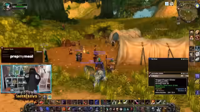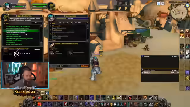 05:54:30Der Streamer äußert sich skeptisch bezüglich eines Raids, da dieser zu chaotisch sein könne und durch einen einzigen Fehler wie eine Bombe den gesamten Raid gefährden könnte. Die Vorbereitungen für den Dungeon werden fortgesetzt, wobei der Fokus auf dem sammeln von Quests und Materialien wie Vollstoff liegt, die für die Ausrüstung benötigt werden werden. Eine spontane Begegnung mit einem anderen Spieler führt zu einem ungewöhnlichen Gegenstandstausch.