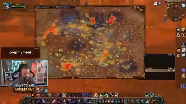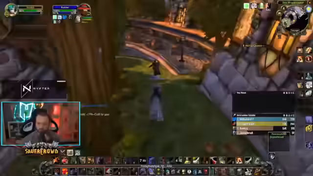 07:14:33Der Streamer sucht nach einem guten Spot zum Farmen und Leveln, da er mit seinem Warrior aufgrund fehlenden Manas Probleme hat, die Mobs effizient zu besiegen. Er erwähnt, dass sein Vater spät von der Arbeit kommt, damit sie zusammen World of Warcraft spielen können. Der Streamer und seine Community sammeln Teile und versuchen, einen guten Ort zum Farmen zu finden, wobei sie auf eine Art Godmodus anspielen, aber die Mobs dennoch lange dauern.
