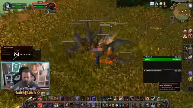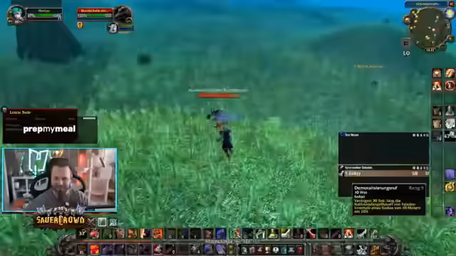 03:36:36Ein unglücklicher Vorfall ereignet sich im Spiel. Ein Charakter stirbt, weil der Ruhestein- und Elune-Makro nicht korrekt funktioniert hat. Der Spieler konnte die Elune-Schild-Fähigkeit nicht rechtzeitig aktivieren und ist ertrunken. Gleichzeitig gibt es technische Schwierigkeiten, da das Layer-System nicht wie erwartet funktioniert und die Mobs extrem langsam respawnen, was den Farm-Prozess massiv verlangsamt und frustrierend gestaltet.