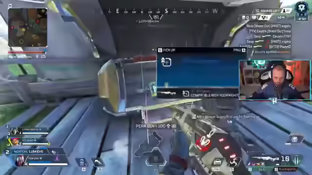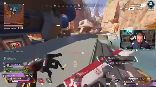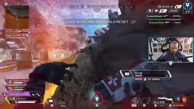 09:12:18Es wird festgestellt, dass man zwar im Plus ist, aber noch weit von Master entfernt. Es wird ironisch angemerkt, dass die Zuschauer nicht fest genug an einen glauben. Es wird über ein Sabotageangebot von Mango (10 Subs für einen Sprung von der Map) diskutiert und abgelehnt. Es wird über den schlechten Loot-Ort und die ungleiche Verteilung der Gebäude geklagt. Es wird festgestellt, dass man bereits in Pred-Lobbys spielt und teilweise gegen Pred-Teams antritt. Es wird erwähnt, dass man keine Shotgun mehr spielen wird. Es wird über gute Loot-Funde und das Brechen eines Gegners gesprochen. Es wird über einen Teamkollegen geklagt, der einen Kill stiehlt und einen dafür anschreit. Es wird über rote Symbole und eine schlechte Verbindung geklagt. Es wird über einen unkooperativen Teamkollegen (Wraith) geklagt, der alleine in ein Dreierteam läuft und stirbt. Es wird ironisch angemerkt, dass der Teamkollege das Spiel selbst gewinnen kann und kein Team braucht. Es wird über eine neue Map (Stormpoint) und neues Glück gesprochen. Es wird über einen Teamerfolg mit einem HP diskutiert. Es wird über eine nervige Lobby und die Spielweise der Gegner (Gibi, Newcastle, Caustic) gelästert. Es wird überlegt, ob man die Runde gewinnen könnte, wenn der Sparrow nicht da wäre. Es wird über Pech und fehlendes Glück geklagt. Es wird festgestellt, dass der Battle Pass fast durch ist.