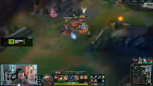 01:09:51Während eines laufenden League-of-Legends-Spiels kämpft der Streamer mit seinem gewählten Mordekaiser gegen einen Gegner, der als Top-Lane-Seraphine auftrat. Dieses ungewöhnliche Setup macht ihm zu schaffen, da er sich in der Lane nicht behaupten kann und wenig Schaden anrichten kann. Er reflektiert über alternative Champions wie Yorick oder Darius, die besser gegen Mordekaiser funktionieren könnten, und fühlt sich selbst im Nachhinein schlecht aufgestellt. Die Performance seines gesamten Teams ist ebenfalls unzufriedenstellend, was zum Verlust des Spiels führt.