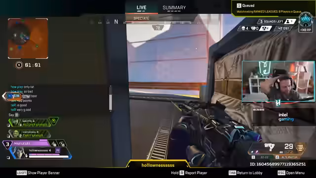 00:03:34Der Stream wird gestartet und es geht direkt in das Spiel. Der Streamer beginnt mit einer Pred-Lobby auf der Olympus-Map. Er erwähnt, dass er es mit sehr guten Gegnern zu tun hat und versucht, strategisch vorgehen, um Evo-Harvester und Loot zu sichern. Das Gameplay ist von riskanten Positionen und schnellen Kämpfen geprägt, in denen er in den ersten Runden bereits Punkte verliert.
