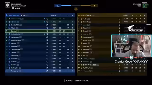 04:45:53Nach erfolgreichem Eintritt ins Spiel schaut sich der Streamer den Trailer und den Battle Pass der neuen Season an. Die im Battle Pass enthaltenen Skins werden als 'schnieke' und 'nice' beschrieben, wobei ein erwähnter blauer Skin augenscheinlich nicht verfügbar ist. Die Verwendung des Creator Codes 'X Hanky' wird für Käufe im Ingame-Shop empfohlen, um den Streamer zu unterstützen. Beim Versuch, den Code einzugeben, treten technische Probleme auf, da das Steam-Overlay deaktiviert ist.