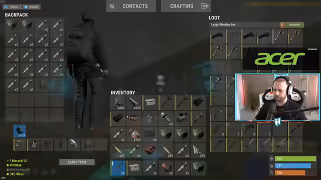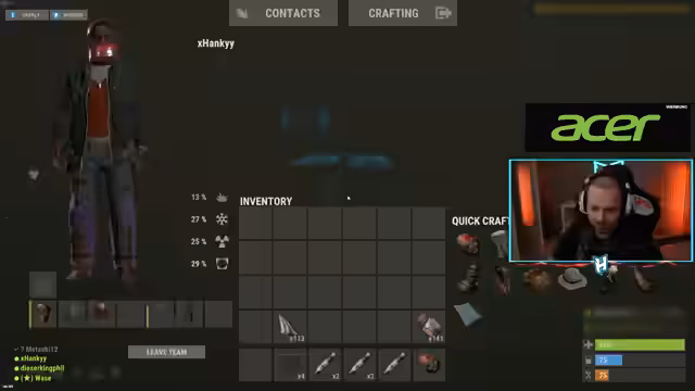 03:19:08Ein Spieler namens Sebastian kontaktiert das Team und möchte eine Waffe im Austausch für Informationen über eine feindliche Base. Es wird eine mögliche Allianz erwogen, jedoch sind Bedenken hinsichtlich des Verrats vorhanden. Der Streamer versucht, Sebastian mit Ausrüstung auszustatten, während auch mit anderen Spielern gehandelt wird. Gleichzeitig wird über die Bewegungen eines Teammitglieds namens Phil diskutiert, das scheinbar nicht zuverlässig erscheint, da er sein Team im Stich zu lassen scheint.