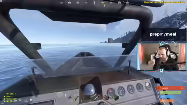01:52:01Ein Patrol-Heli schießt auf das Schiff, woraufhin der Streamer sich versteckt. Es wird überlegt, wer auf die Tröte drückt, wenn das Schiff sinkt. Der Streamer erinnert sich an Vorfälle bei Max Base und Striving. Es wird ein Fischerboot entdeckt, das als Hausboot genutzt werden kann. Die Community wird dafür gelobt, dass sie so schnell Links folgen und andere Streamer unterstützen. Es wird festgestellt, dass die Brücke auf dem Schiff zur Seite fährt. Der Streamer äußert den Wunsch, mit einem Helikopter Zavex' Base zu suchen, um dort nachts anzuklopfen und etwas Zement zu holen. Er betont, dass er die Base nicht zerstören, sondern nur ein bisschen Angst machen will. Es wird überlegt, ob man auf die letzte Kiste verzichten und stattdessen Raketen-Action machen soll.