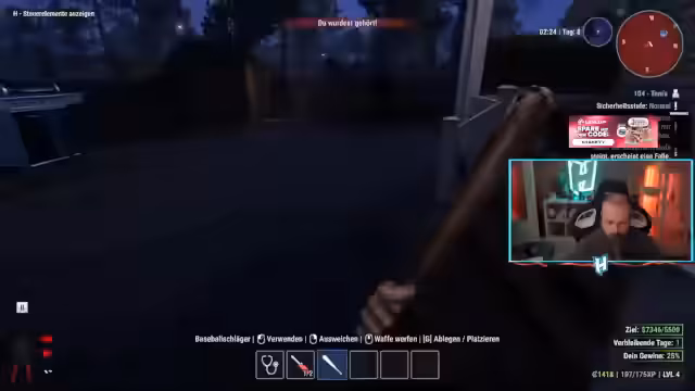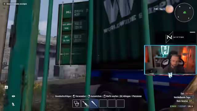07:09:05Die Polizei beteiligt sich am Raubzug und macht Jagd auf die Spieler, was zu Verwirrung führt, da es keinen sichtbaren Polizeiruf gab. Ein Bewohner wird nacheinander überwältigt, und die Spieler werden von den Polizeibeamten verfolgt. Nachdem die Gruppe durch die Stadt flieht, stellt sich heraus, dass die Polizei ohne Alarm aktiv wurde. Es wird beschlossen, den Raubzug abzubrechen und sich auf die Vorbereitung für die neue Map sowie die Erfüllung von VIP-Aufträgen zu konzentrieren, da die alten Map-Häuser leerer werden und weniger Loot bieten.