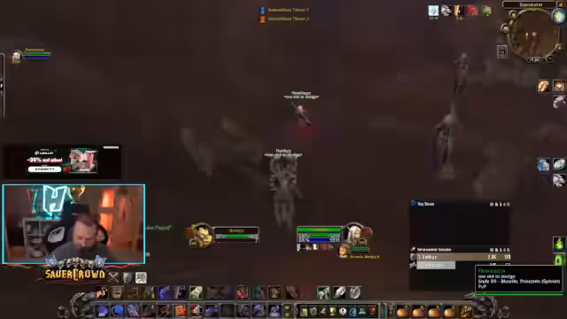05:41:44Der Stream dokumentiert die frustrierenden PvP-Erfahrungen im Arathi Becken. Das Team konfrontiert mit gegnerischen Gruppen, die als vollgegerüstet mit T3-Ausrüstung beschrieben werden, während sie selbst mit Boost-Chars spielen. Dies führt zu einem unfairen Spielfeld und schnellen Niederlagen. Als Grund hierfür wird der Wechsel auf einen PvE-Server identifiziert, der ursprünglich vermieden werden sollte, um Streamsniper zu umgehen. Die Organisation der eigenen Gruppe und die Koordination werden als kritisch erachtet, auch wenn sie oft fehlschlägt.