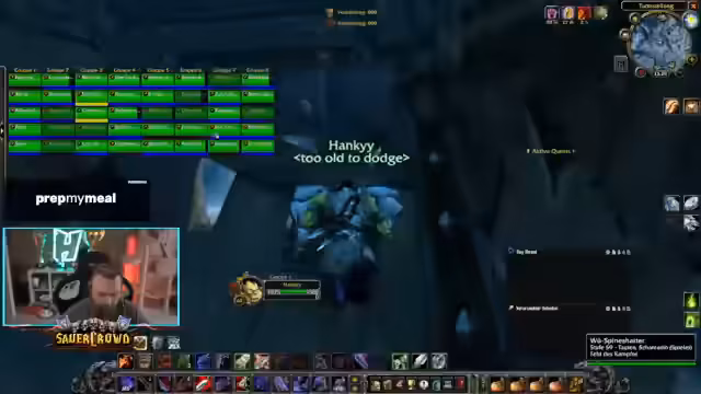 07:15:46Im Stream wird das Questing in einer Gruppe thematisiert. Es geht hauptsächlich um das Farmen von Mobs zur Erfahrungspunkte (XP)-Generierung. Der Streamer erwähnt, dass er 15 Stück davon im Inventar hat, und bezweifelt, ob sich das lohnt. Auch wird eine PvP-Quest erwähnt, bei der der Turm der Krone-Wache eingenommen werden muss. Der Streamer beschreibt seine eigene Erfahrung in der Gruppe und wie er mit der Gruppendynamik und den Questzielen umgeht. Er äußert sich frustriert über die Anzahl der zu farmenden Mobs.