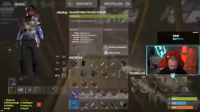 00:00:44Der Stream startet mit dem neuen Rust Day. Es wird über die Waffenauswahl diskutiert, ob Coffee Can oder Wolfskopf besser geeignet ist. Das Team plant die erste Ausrüstung und strategische Schritte für den Tag. Die Stimmung ist motiviert, mit Fokus auf schnelle Aktionen und Loot-Sammlung. Es folgen erste Team-Kommunikationen über Discord für geplante Bewegungen und Positionierungen.