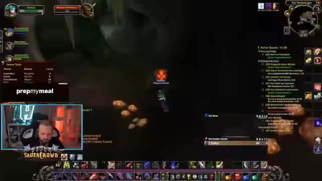 12:14:45Die Gruppe beendet ihr gemeinsames Farm-Abenteuer mit einer Endspurt. Nach anfänglichem Pech bei den Drops, findet der Streamer eine seltene Waffe, die als 'carry' für die nächsten Level dienen soll. Der Erfolg der Gruppe wird gefeiert, und der Streamer zeigt seine Freude über die gefallene Beute. Anschließend planen sie ihre nächsten Schritte, wie das Hosten im Gasthaus oder die Fortsetzung der Quests in anderen Gebieten wie Arathi-Hochland.