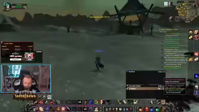 14:53:13Der Stream startet mit der Ankündigung, einen Dungeon zu besuchen. Die Gruppe befindet sich in Ashenvale, einem Gebiet, das von der Horde besetzt ist und daher gefährlich ist. Das Ziel ist es, bis zum Steinkrallengebirge vorzudringen. Die Gruppe muss dabei nachzüglerische Spieler einholen und sucht nach einem Weg, um sich zu koordinieren, inklusive der Nutzung eines Proximity Voice-Add-ons für die Kommunikation während des Laufens.
