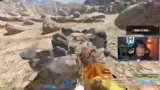 00:44:05Nach dem Arena-Match wechseln die Spieler zu Bad Wars, einem anderen PvP-Modus. Es beginnt die Phase des Basenbaus und Farmings, bei der der Streamer und seine Mitspielter ('Reapers', 'Barty') Ressourcen sammeln und eine Basis errichten. Der Streamer ist unzufrieden damit, dass er zum Farmen gedrängt wird, anstatt sofort zu kämpfen, und fordert Koordination vom Team.
