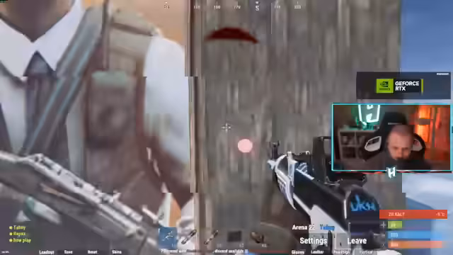 00:05:35Der Fokus verlagert sich auf das Rust-Rivals-Event. Der Streamer betritt die Arena, sucht ein Match und spielt auf der Map Shipment. Es kommt zu intensiven PvP-Kämpfen, bei denen er und sein Gegner, 'Barty', verschiedene Strategien wie das Zonenziehen, das Nutzen von Deckung und präziones Zielen anwenden. Der Streamer diskutiert sein Gefühl für den Waffenkontakt und die Bewegungen des Gegners.