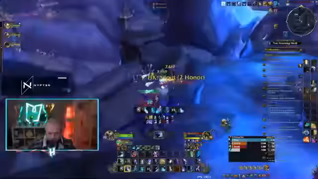 08:20:25Nach mehreren Runden im Arena-Modus wechselt der Streamer das Thema und widmet sich dem Open-World-PvP in einem speziellen Gebiet. Dieses Gebiet, bekannt als 'White Storm', ist ein 'alles gegen alle' (FFA) PvP-Bereich, in dem Spieler von der Allianz und der Horde aufeinandertreffen. Das Ziel ist es, feindliche Spieler auszuschalten, um Belohnungen wie Ehre und Beute zu erhalten. Der Streamer schildert die chaotische Natur dieser Kämpfe, in denen es keine festen Teams gibt und ständig neue Gegner auftauchen.