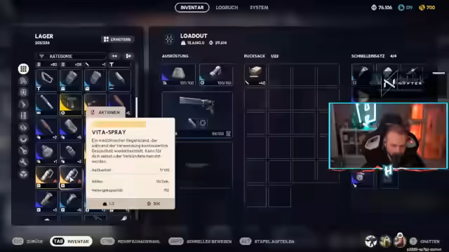 01:30:32Der Verlust des Vita Sprays wird bedauert, und es wird überlegt, es in die Sicherheitstasche zu legen. Es wird gefragt, wie das Vita Spray funktioniert und ob es zum Heilen dient. Der Streamer ärgert sich, dass er sich nicht geheilt hat und gestorben ist, obwohl der Gegner 'low' war. Es müssen Schildzellen gekauft werden. Ein 'Sturmschild auf Lader', das 50 Mal benutzt werden kann, wird erwähnt, aber die Funktion ist unklar. Es wird überlegt, mit einer Kampfmarke und einem mittleren Schild in die nächste Runde zu gehen. Die Reparatur von mittleren Schilden ist nicht möglich, da die benötigten Schaltkreise fehlen. Der Streamer hat einen Schaltkreis verloren, der kaputt war. Es wird festgestellt, dass die End-Level-4-Waffe sehr schnell schießt und gut für Kämpfe ist. Es gibt Probleme beim Starten der nächsten Runde, da ein Spieler nicht bereit ist und Oliven fehlen.