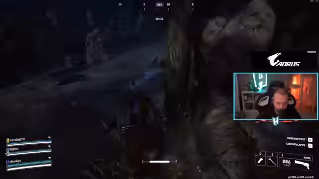 04:22:31Für den Abschluss wird ein nächtlicher Spielmodus gestartet. Das Team erkundet eine unbekannte Map und findet reichlich Loot. Sie werden jedoch von einem Rocketeer angegriffen, der aus der Ferne Raketen auf sie schießt. Die Situation wird gefährlich, als eine Spinne auftaucht, die den Rocketeer eliminiert, bevor sie das Team selbst angreift. Der Streamer muss seine Ressourcen wie Munition und Heilung strategisch einsetzen.