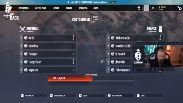 05:38:34Das Turnier beginnt, aber es treten sofort technische Probleme auf. Ein Teammitglied kann dem Spiel nicht beitreten und es gibt Schwierigkeiten mit dem Ubisoft Connect-Invite-System. Das Team versucht, das Problem zu lösen, während der Streamer die Nervosität der Spieler spürbar macht. Die erste Runde gegen das französische Team beginnt mit einem späten Start und einigen organisatorischen Herausforderungen, die den Spielfluss stören.