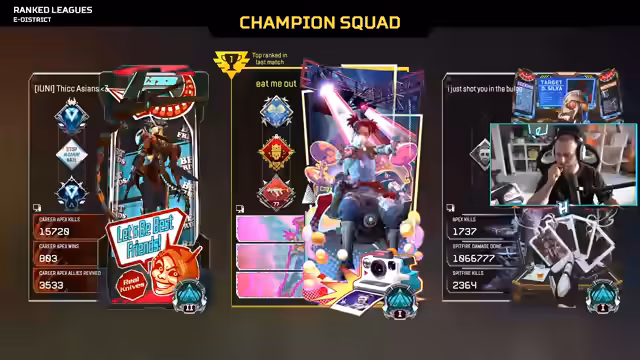 00:14:29Es wird die Leistung eines Teammitglieds (Scout) kritisiert und taktische Fehler werden analysiert. Der Streamer kommentiert die Schwierigkeit, Gegner zu lokalisieren und die Notwendigkeit, schnellere Entscheidungen zu treffen. Es wird über die Map-Rotation und die Sinnhaftigkeit bestimmter Charaktere auf verschiedenen Maps diskutiert. Die Bedeutung von Überlebensinstinkten und schnellen Entscheidungen in Bezug auf Teammitglieder wird hervorgehoben. Es wird die Notwendigkeit betont, sich bei einem gecraberten Teammitglied zu verpissen und auf Placement zu spielen, um Punkte zu retten. Strategien für Solo-Challenges werden erörtert, wobei Stream-Sniping als unfair abgelehnt wird. Es wird die Waffenwahl und die Bedeutung einer PK (Peacekeeper) für den Spielstil des Streamers erörtert, sowie die Vorliebe für die R9 und die Nemesis. Es wird überlegt, Revenant als Charakter zu spielen, um die Charge-Steine für den Pounce zu reduzieren.