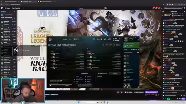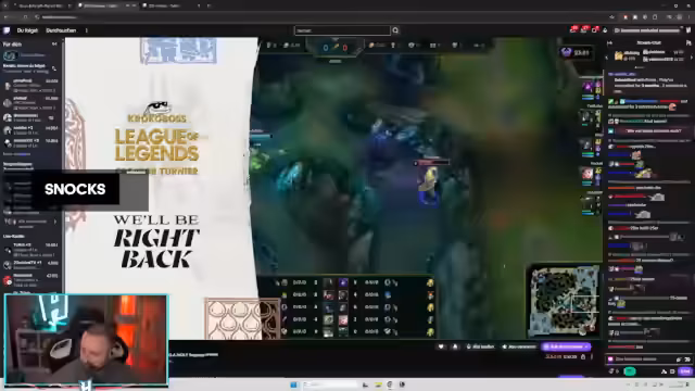 07:15:37Das Team analysierte den Turnierbaum und die Leistungen der anderen Teams. Es wurde festgestellt, dass viele Pros auf den ADC-Positionen spielten. Ein Replay eines verlorenen Spiels wurde gezeigt, wobei die Niederlage auf eine Granate zurückgeführt wurde. Die Teams „Schuld und Sühne“ und „Ente Süssauer“ wurden als die zwei stärksten Teams identifiziert. „Ente Süssauer“ wurde als schwächer in der ELO eingeschätzt, wobei Alex als Hauptbedrohung galt, aber Sola als besser als Alex eingestuft wurde. „Schuld und Sühne“ mit Tani und Fiddler wurde als gefährlich angesehen, wobei Fiddler als der ekelhafteste Spieler des Turniers beschrieben wurde, da er ständig im Jungle „durchflippt“. Das Team hatte jedoch im Spiel gegen Obsis gute Erfahrungen gemacht, da sie ständig Informationen über Fiddlers Position hatten. Die Leistung von Niko im Jungle wurde als „mega“ und MVP-würdig gelobt. Die lange Dauer des Turniers wurde thematisiert, wobei erwartet wurde, dass es bis spät in die Nacht gehen würde. Die Notwendigkeit einer Pause für Essen wurde angesprochen, aber die Ungewissheit über den Start des nächsten Spiels führte zu Verzögerungen. Die technischen Probleme mit dem Spectator und dem Start des Spiels wurden diskutiert, wobei das Team schließlich beschloss, einfach zu starten und die VODs später anzusehen.