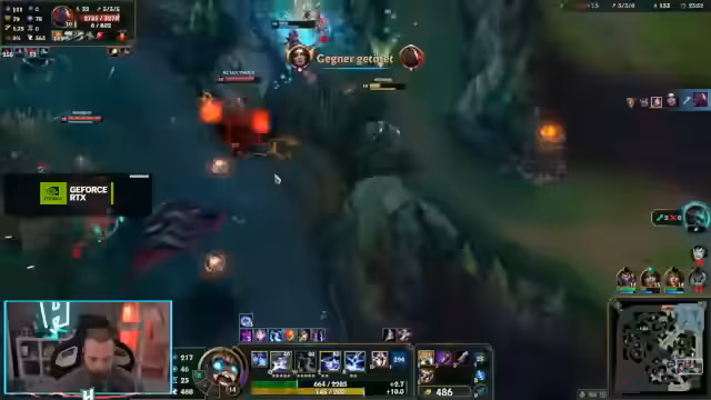 02:00:50Trotz anfänglicher Schwierigkeiten und Frustration über den gegnerischen Garen, der immer wieder mit nur 1% Leben entkommt, gelingt dem Team ein Comeback. Die Mid-Lane trägt maßgeblich dazu bei, und der Streamer schafft es, den gegnerischen Viktor im Solo-Kampf zu besiegen. Es wird festgestellt, dass Cannon kein optimaler Pick gegen Garen ist, da dieser zu nervig und tanky ist. Die Überlegung, Garen im nächsten Spiel zu bannen, wird verstärkt. Das Spiel wird als sehr intensiv beschrieben, und das Team gewinnt einen wichtigen Teamfight, ohne dass jemand stirbt, was als „Pro-Fight“ und „clean gespielt“ bezeichnet wird.