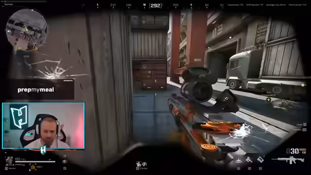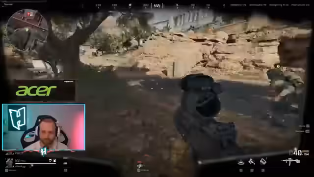 04:28:33Der Streamer und seine队友 kämpfen gegen ein gegnerisches Team in Barracks. Es kommt zu intensiven Schusswechseln und der Streamer fragt nach der Position eines Spielers. Er geht davon aus, dass der Gegner zackig handelt und wahrscheinlich ohne das eigene Team losgeht. Es entwickelt sich ein gefährliches Szenario, bei dem der Streamer und seine队友 versuchen, einen Gegner hinter einem roten Container zu eliminieren.