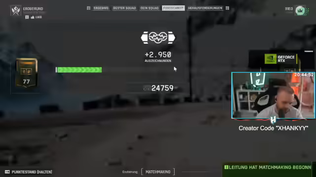 21:35:47Nach über 21 Stunden Streaming wird die Lust auf Battlefield 6 langsam weniger, besonders da die aktuellen Runden als sehr frustrierend und von schlechten Spawns geprägt sind. Die Müdigkeit setzt nun ein, da der Spieler den Spaß am Spiel verliert. Um die letzten Stunden zu überbrücken, wird der Spielmodus zu 'Durchbruch' gewechselt, um actionreichere und kürzere Runden zu spielen. Gleichzeitig wird das letzte Giveaway für ein Nifter-Gaming-Headset für die im Stream verbliebenen aktiven Zuschauer gestartet und der Gewinner ermittelt.