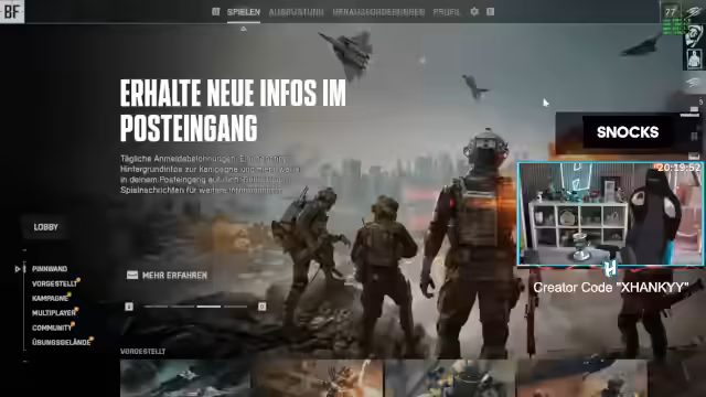 00:04:38Der Streamer begrüßt die Zuschauer und eröffnet einen 24-Stunden-Battlefield-6-Marathon. Nach technischen Startschwierigkeiten mit dem Mikrofon erfolgt der Einritt ins Spiel. Initial wird der Spielmodus King of the Hill gespielt, wobei der Streamer auch kleinere Modi und wöchentliche Herausforderungen erwähnt. Gleichzeitig wird über den globalen Rang im Helikopter-Modus gesprochen, der sich auf Platz 167 verbessert hat, mit dem Ziel, in die Top 100 aufzusteigen.