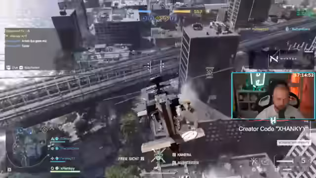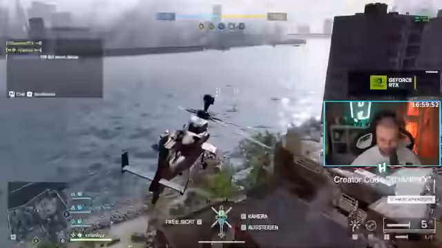 17:14:02Ein Versuch, durch den Austausch des Piloten mit einem Gunner-Spot die Effektivität im Helikopter zu steigern, scheitert am Verhalten des Teammitglieds. Der Gunner schießt nicht, was einen geplanten Angrang zunichtemacht. Der Streamer zeigt sich enttäuscht vom kooperationsunwilligen Verhalten der Random-Mitspieler und von der verpassten Chance, mit einem fähigen Gunner als 'Hedi-Duo' erfolgreich zu sein.