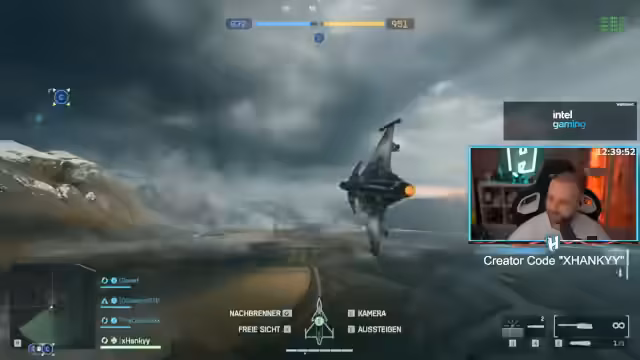 13:40:05Im späteren Verlauf des Streams kämpft der Streamer mit technischen und spielerischen Problemen. So beschreibt er, dass er aus dem Jet ausspringen kann, aber nicht wieder einsteigen kann, was ihn frustriert und ihn aus dem Spielfeld wirft. Er erkennt an, dass dieses Manöver Übung erfordert. Auch das Verhalten des Gegners, der mit einem Jet töten will, statt zu helfen, wird als "kompleten Mogel" und unfaires Verhalten angesehen, das den Spaß am Spiel trübt.