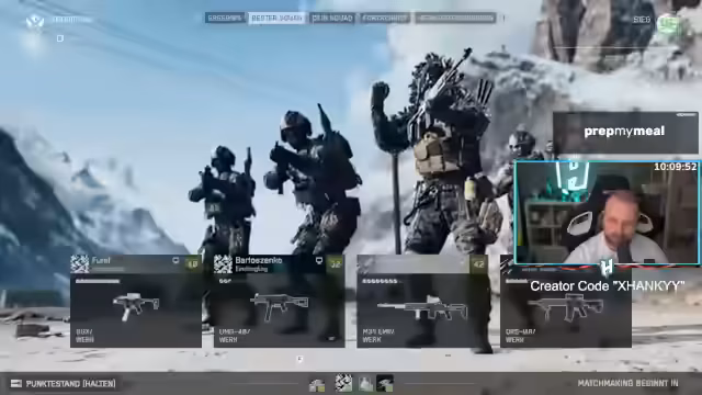 00:10:51Es finden zahlreiche direkte Interaktionen mit der Community statt. Der Streamer tauscht sich mit Chat-Mitgliedern wie Mango und Payman über Spielstile und -zeiten aus. Währenddessen werden intensive Gefechte geschildert, darunter ein One-Man-Army-Spielzug mit zehn Kills und kritische Momente wie unerwartete Todesfälle durch Flankierangriffe. Das Gameplay wird als herausfordernd beschrieben, mit Fehlern wie dem Übersehen von Gegnern oder dem Versagen von Reparaturmechanismen.