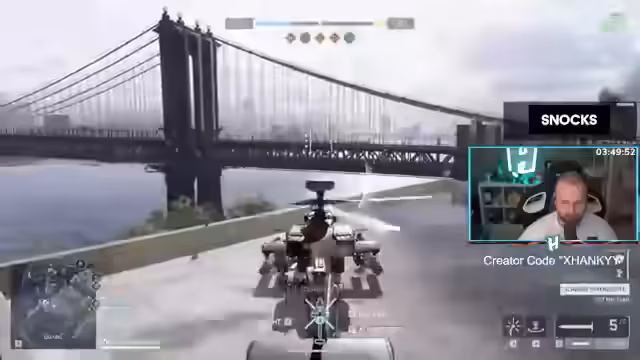 23:03:20Der Streamer erleidet während einer Runde plötzlich einen Sekundenschlaf, seine Augen fallen zu und er verliert das Bewusstsein, was sein Fokus im Spiel stark beeinträchtigt. Es kommt vermehrt zu unfairen Situationen, in denen gegnerische Spieler den Helikopter-Spawn blockieren oder unerreichbar im Gebirge positionieren. Der Versuch, selbst den Heli zu fliegen, scheitert oft durch sofortige Abschüsse durch RPGs oder den gegnerischen Jet. Dies führt zu großer Frustration, da er das Gefühl hat, keinen nennenswerten Einfluss mehr auf das Spielgeschehen zu nehmen.