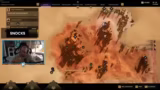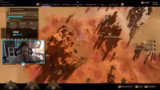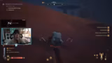 04:53:33Der Streamer navigiert durch eine gefährliche Wüstenlandschaft mit Treibsandfeldern, die umgangen werden müssen. Dabei kommt es zu einem Treffen mit einem riesigen Sandwurm, dem der Streamer knapp entkommen kann. Er berät seinen Mitspieler Lukas über die Route und weist darauf hin, dass der Wurm trotz seiner Größe nicht mehr als allzu große Bedrofung wahrgenommen wird.