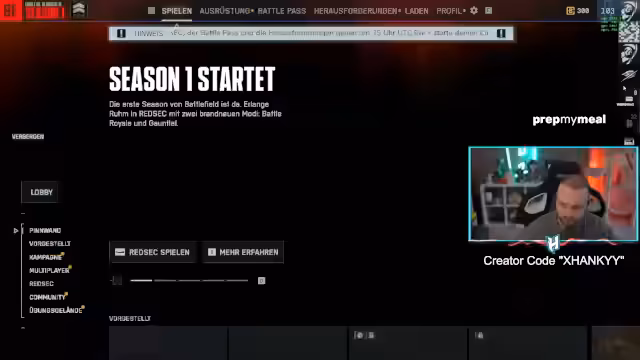 00:05:46Der Stream beginnt mit der Begeisterung über das Battlefield Battle Royale. Der Streamer berichtet von bereits drei gewonnenen Spielen, einem als Sniper, einem mit einem Tank und einem weiteren, das noch aussteht. Er betont, dass er nicht gezielt nach Wins gesucht hat, sondern von der Spielsucht getrieben wird. Er ist sich noch unsicher, welche Waffen und Loadouts am besten geeignet sind und erkundet die entspannten Lobbys des Spiels.