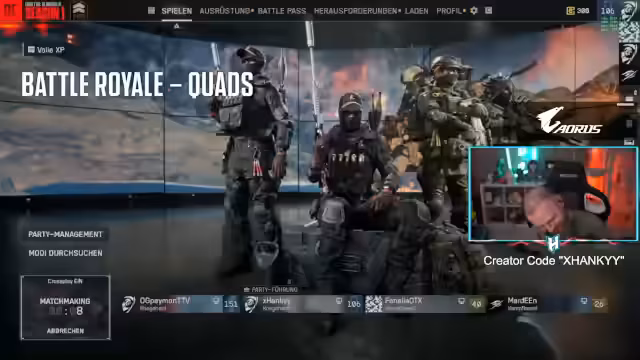 05:07:10Ein Mitspieler erreicht den Level 100 im Battle Pass, was große Bewunderung im Stream hervorruft. Der Streamer erwähnt ebenfalls den Fortschritt bei der Waffen-XP und die Vorteile des Doppel-XP-Events, welches er nutzt, um schneller im Battle Pass aufzusteigen. Er betont, dass das Leveln, insbesondere im Battle Royale, sehr viel Erfahrungspunkte bringt und damit ein zentrales Ziel im Stream darstellt.