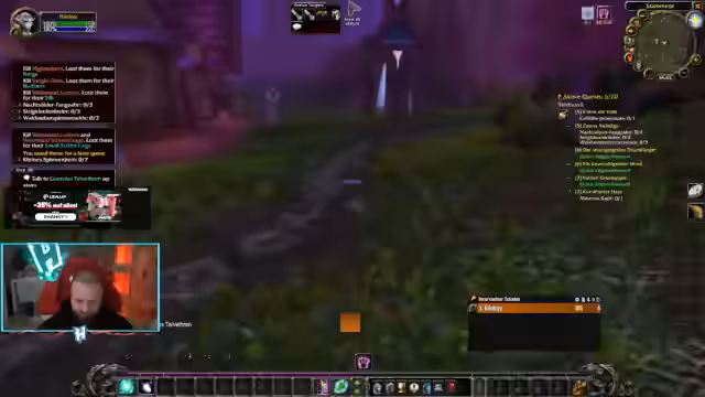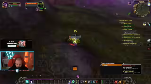 00:24:08Während des Solo-Levelns stirbt der Streamer überraschend mit seinem Level-8-Krieger in einer Höhle im Nachtelfen-Startergebiet. Grund sind zwei gleichzeitig gepullte Mobs und ein versehentliches Respawning aller Gegner hinter ihm beim Fluchtversuch. Dies unterstreicht die Schwierigkeit des Krieger-Levelns ohne Heiloptionen und laktische Überlegungen zur Klassenwahl aus. Der Tod führt zu Frustration, da er bereits Berufe geskillt und Rucksäcke erspielt hatte.