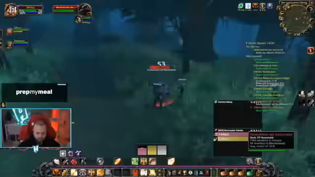 06:27:07Die Gruppe sammelt Quest-Items wie Spinnenbeine und bekämpft Skelette sowie Spinnen in der Umgebung von Darkshire. Dabei treten Probleme mit resistenten Mobs und voller Inventare auf. Diskussionen über effiziente Loot-Strategien und das Teilen von Quest-Items zwischen den Spielern dominieren den Spielablauf. Zeitgleich werden Vorbereitungen für anstehende Dungeon-Läufe getroffen.