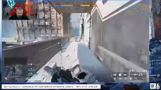 00:04:30Der Streamer begrüßt das Publikum und stellt das Battlefield 6 Winter-Event vor. Er erklärt, dass Season 1 in drei Teile gesplittet war und dieser Stream den finalen Teil markiert. Dabei zeigt er die neuen Winter-Skins, die als visuell ansprechend beschrieben werden. Er spielt die Map 'Empire State' und kommentiert die Änderungen. Ein wichtiger Aspekt ist, dass die Season 1 nun abgeschlossen wird, während er auf die bevorstehenden Inhalte des Winter-Events hinweist.