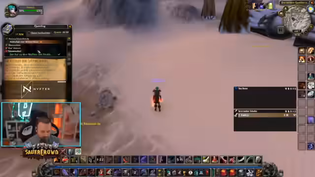 05:26:45Der Streamer und ein Mitspieler arbeiten gemeinsam an Quests in Winterspring, konkret an der Quest "Der Verderbnis erliegen". Dabei wird die Methode besprochen, wie man die benötigte Kiste findet und benutzen muss. Es wird erwähnt, dass es sich um ein Fünfer-Camp handelt, bei dem Hilfe definitiv benötigt wird. Die Kommunikation zielt darauf ab, die Quest effizient zu lösen und gegenseitig Unterstützung zu bieten, während man sich durch das Gebiet bewegt.