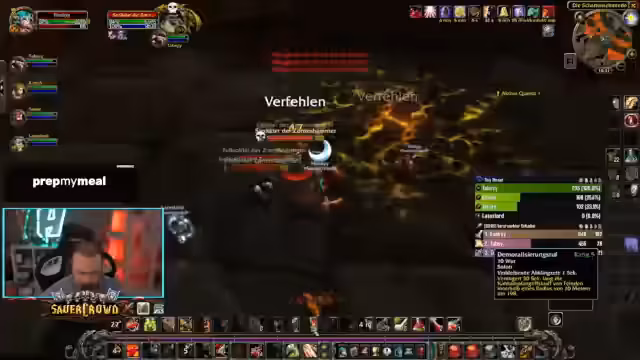 09:28:06Ein plötzliches, mögliches Netzwerkproblem führt zu einer Unterbrechung des Streams, als der Streamer sich kurz vom Spiel entfernt. Nach der Rückkehr gibt es anfängliche Koordinationsprobleme in der Gruppe. Die Strategie wird angepasst, um die Mobs effizienter zu tanken und zu fokussieren, anstatt alle Mobs mit DoTs zu belegen. Die Gruppe entscheidet, sich auf einen bestimmten Offizier zu konzentrieren, um den Run sauberer zu gestalten.