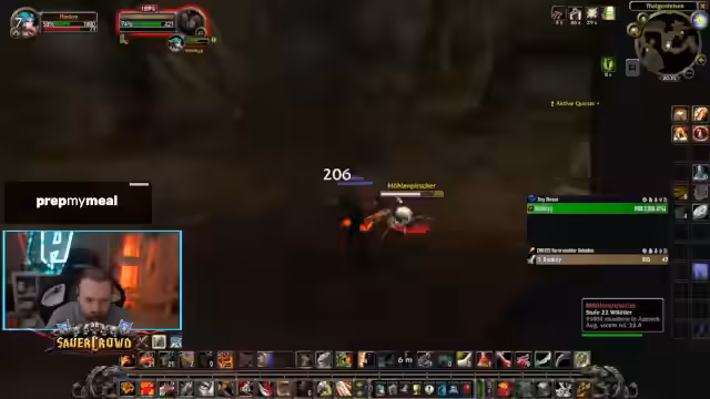 02:52:54Der Fokus liegt auf dem effizienten Leveln im Teufelswald. Der Streamer kämpft gegen spezielle Gegner wie 'Feuerteufelsbinder' und stellt fest, dass die Gebiete stark überfarmt sind. Er findet Guides auf Wowhead hilfreich, um optimale Builds für seinen Fury-Krieger zu finden und zeigt parallel den Sammelprozess von Rohmaterial wie Runenstoff.
