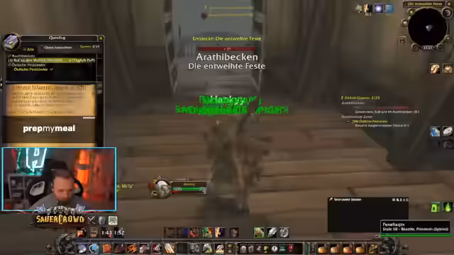 15:47:34Nachdem der TBC-Start gescheitert ist, kehren der Streamer und sein Begleiter zu den Classic-Quests im Sumpfland zurück. Sie konzentrieren sich darauf, alle Quests in der Gegend abzuschließen, auch ohne alle Vorbedingungen zu erfüllen. Es kommt zu technischen Problemen und Missverständnissen bei der Navigation und der Suche nach Questgebern. Der Streamer zeigt sich trotz der Enttäuschung über den gescheiterten TBC-Start humorvoll und dankt seiner Community für die Unterstützung. Der Stream endet damit, dass er sich weiter den Quests widmet, während er nicht mehr in TBC einloggen kann.