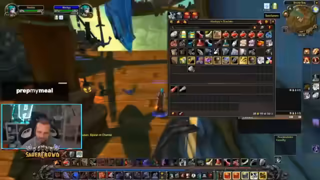 12:03:00Der Streamer und sein Begleiter erreichen Booty Bay und erhalten den erwarteten Buff. Es gibt eine kleine Verzögerung, da einer der Spieler kein Flugzeug hat, was die Zeitplanung etwas erschwert. Nachdem der Buff erhalten wurde, beschließen sie, den Flugpunkt nach Stormwind anzusteuern. Da der Begleiter kein Reittier besitzt, wird beschlossen, stattdessen zu schwimmen, was schneller ist. Dies ist Teil der Vorbereitung für die bevorstehenden Aktivitäten.