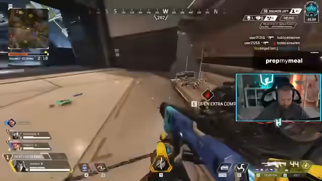 00:23:55Der Streamer startet sein erstes offizielles Spiel im neuen Split. Er wird als Platin 4 eingestuft und muss sich erst an die veränderten Karten und Waffen wie die Flatline gewöhnen. Sein Team aus Ash, Horizon und Ballistik wird heftig in der Lobby gedropped. Der Streamer ist von der Stärke von Ash und deren Dash beeindruckt. Es kommt zu einem Teamkampf, in dem sein Team unterliegt. Ein großes Problem ist der fehlende Turbocharger für Waffen wie die Devotion. Nach dem Spiel gibt es technische Probleme mit der Einladung von Freunden, da der Rangunterschied zu groß ist und keine Ranked-Lobbys gebildet werden können.