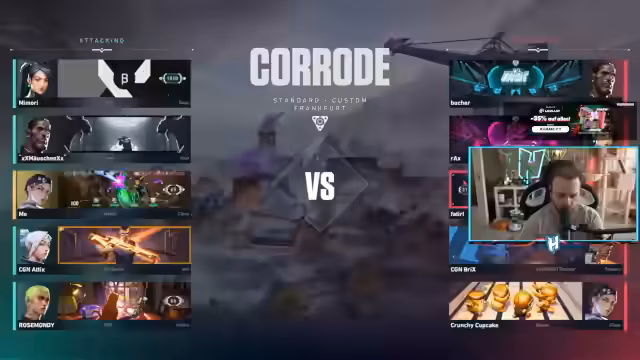 02:48:35Die Taktik auf Split wird umgesetzt. Das Team führt koordinierte Angriffe durch, oft unter Nutzung von 'Smokes' und 'Flashes' zur Ablenkung oder zum Decken. Die Gegner werden unter Druck gesetzt und das erste Game erfolgreich gewonnen. Der Streamer lobt insbesondere die gute Kommunikation und die Einzelleistungen seines Mitspielers Rose, der mehrere wichtige Kills beisteuert und das Team in Führung bringt.