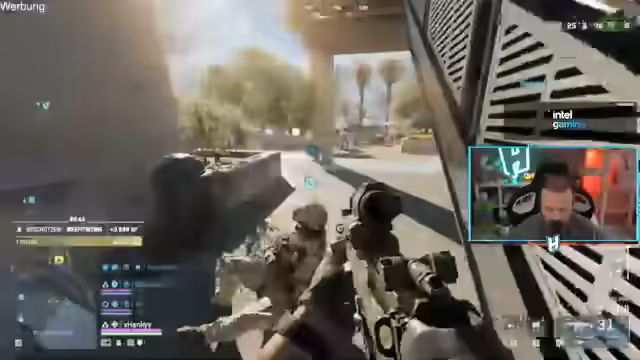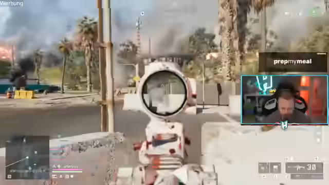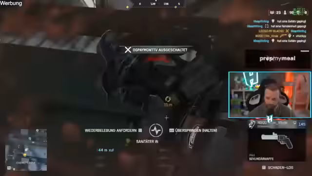 01:44:17Der Streamer und sein Team befinden sich in intensiven Gefechten. Nach einem erfolgreichen Hit und der Eliminierung eines Gegners, der zuvor Unterstützung benötigte, plant das Team die Bombardierung eines Frachtschiffes. Trotz kleinerer Rückschläge und Verwechslungen bei der Tastenbelegung, bleibt die Stimmung konzentriert. Während ein Teammitglied wiederbelebt wird, bemerkt der Streamer, dass er und ein anderer Spieler etwas hinterherhinken, sich aber schnell wieder ins Geschehen einfinden. Sie bewegen sich strategisch, um Gegner in der Stadt zu flankieren und sich vor bekannten Gefahrenpunkten wie einer bestimmten Brücke in Acht zu nehmen. Die Kommunikation über Gegnerpositionen und das Sammeln von Streaks ist entscheidend für ihren Fortschritt, während sie sich durch das Schlachtfeld kämpfen und versuchen, ihre Ausrüstung zu optimieren.