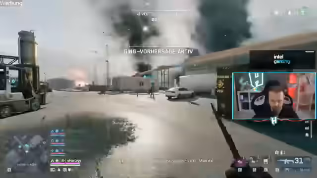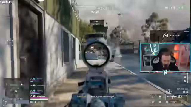 02:17:48Die Aufmerksamkeit verlagerte sich komplett auf das Spiel. Der Streamer kämpfte intensiv gegen Gegner, nutzte Waffen wie RPGs und Airstrikes und versuchte, Teammitglieder wiederzubeleben. Dabei kam es zu hitzigen Gefechten und taktischen Manövern, wie dem Platzieren von Kisten und das Verteidigen von strategischen Punkten wie Loadout-Containern.